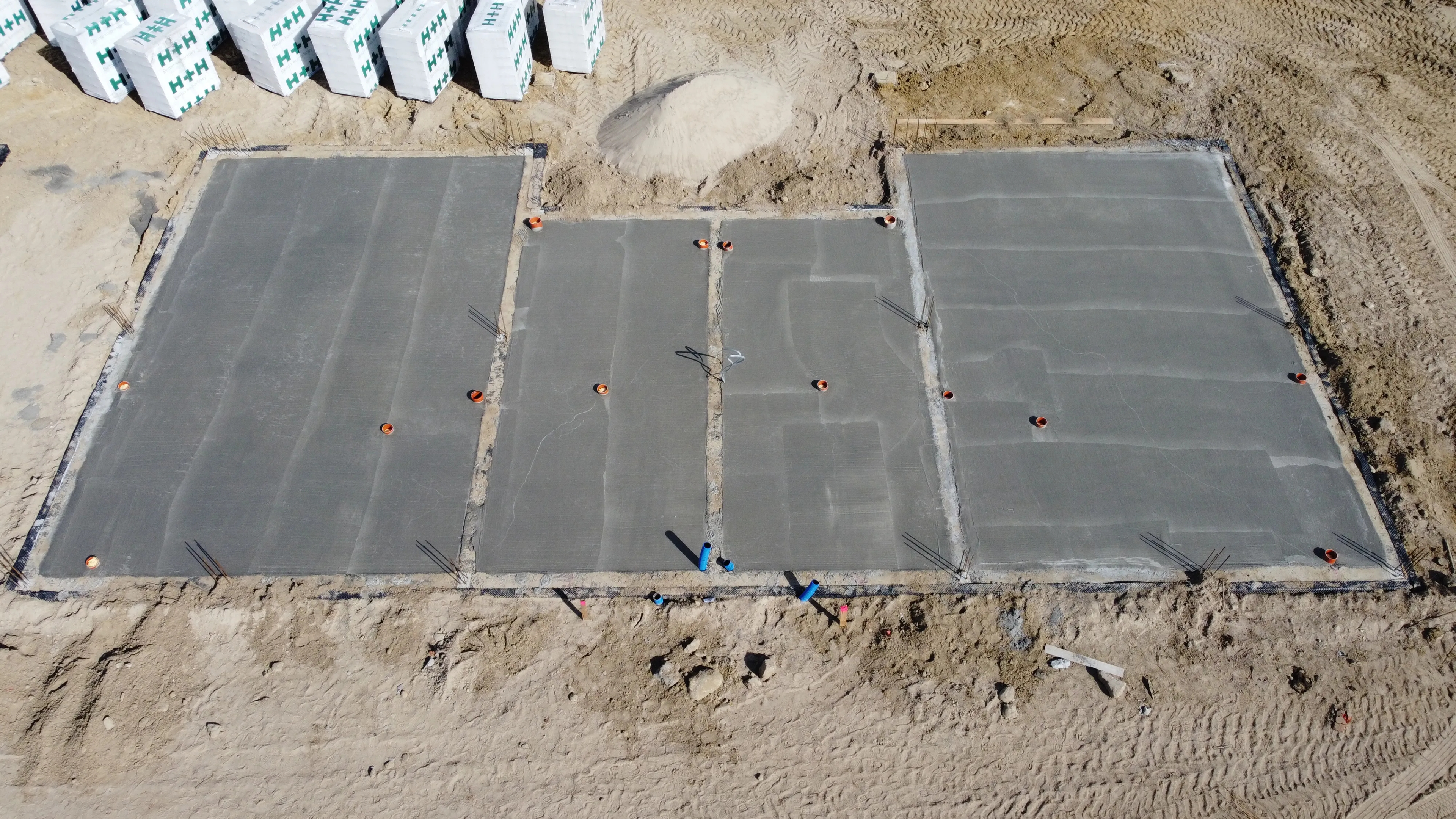 Przeprowadziliśmy wylanie betonu na zbrojone fundamenty. Po utwardzeniu beton tworzy solidną bazę, gwarantując stabilność i wytrzymałość budynku.