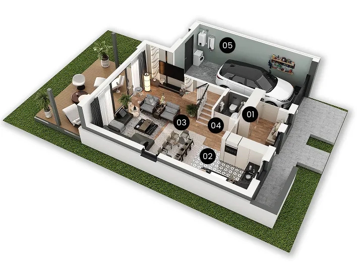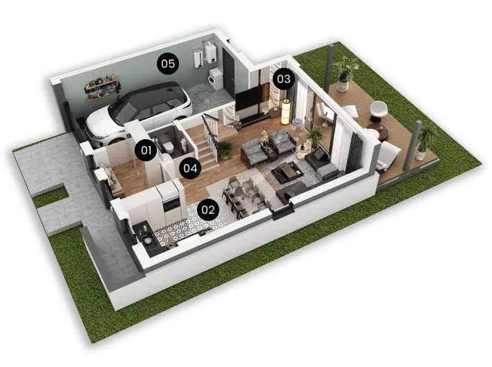 Przestronne działki o powierzchni od 339 m² do 680 m², zapewniające komfortową przestrzeń do wypoczynku i rekreacji. Teren jest wyrównany i przygotowany pod dalszą aranżację według indywidualnych potrzeb. Jest możliwość adaptacji tarasów na dachy zielone, dzięki czemu mieszkańcy mogą stworzyć własną przestrzeń pełną naturalnej roślinności.